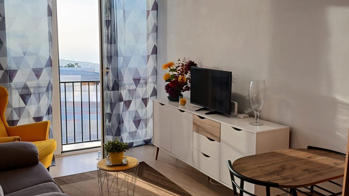 Apartamento dos habitaciones, salon-comedor, cocina americana, un baño, terraza superior, plaza de garaje, con vista al Teide y al mar, servicios de farmacia, restauración, supermercado y parada de guagua a menos de 25 metros.