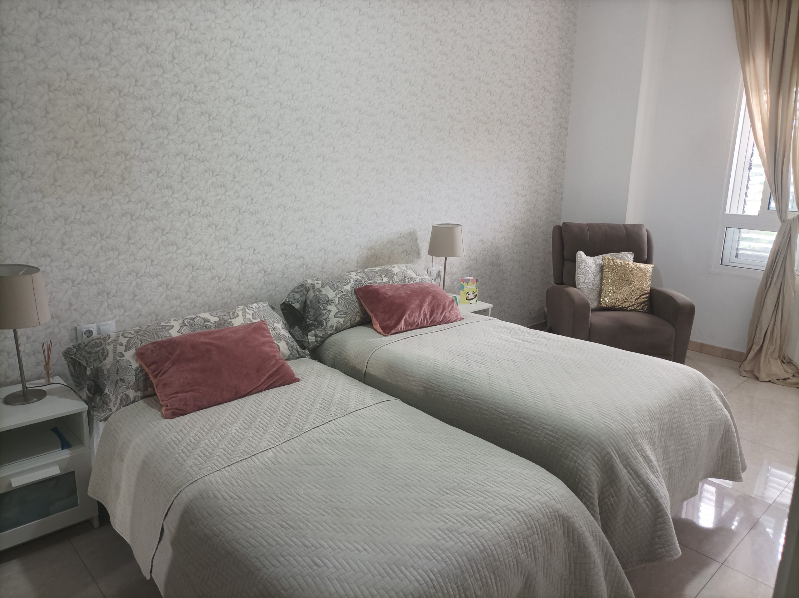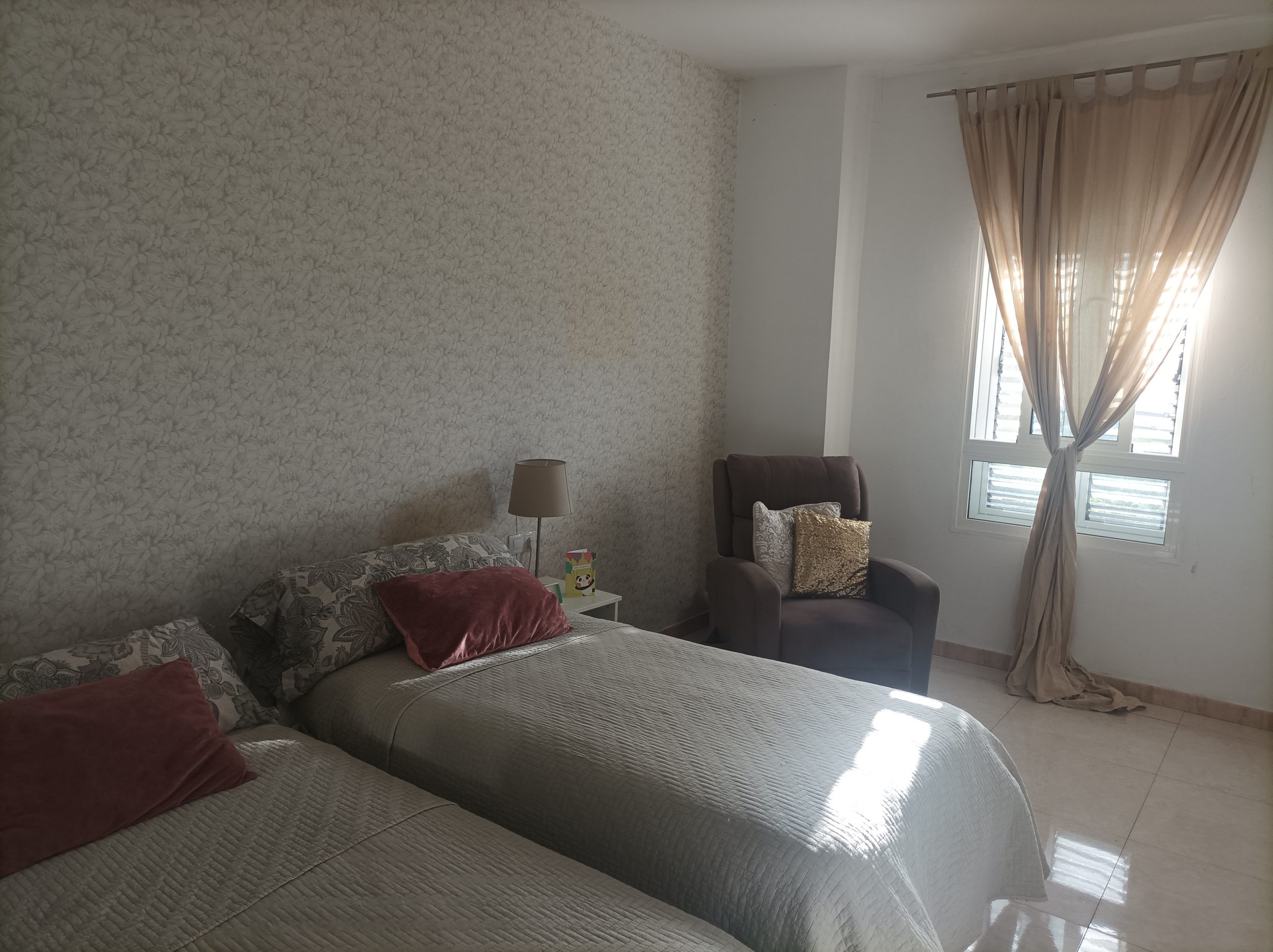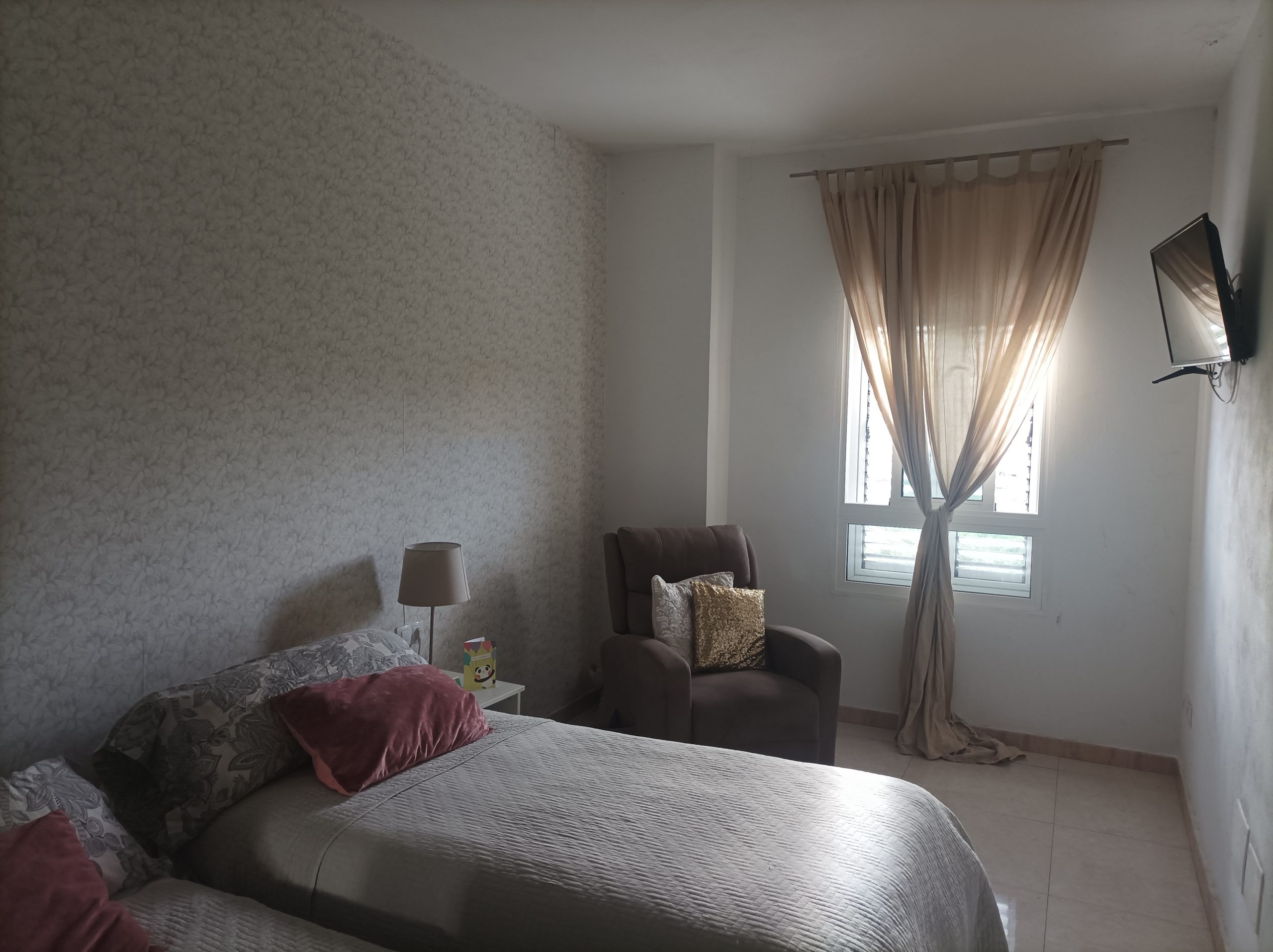 La habitación es exterior con ventana, tiene armario grande,cama de 90, mesitas de noche, TV y es bastante luminosa. Gastos de agua, luz, Internet incluidos en el precio.