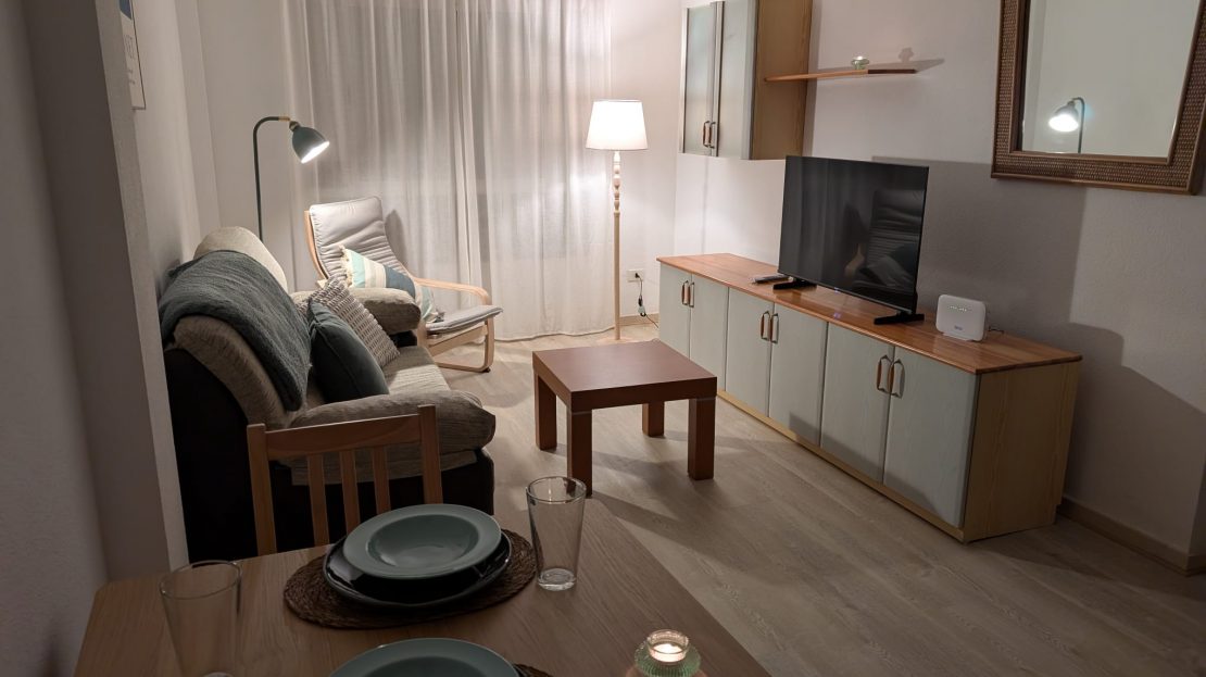 Bonito y acogedor piso a 150m de la playa , de la avenida, con garaje e Internet incluidos.